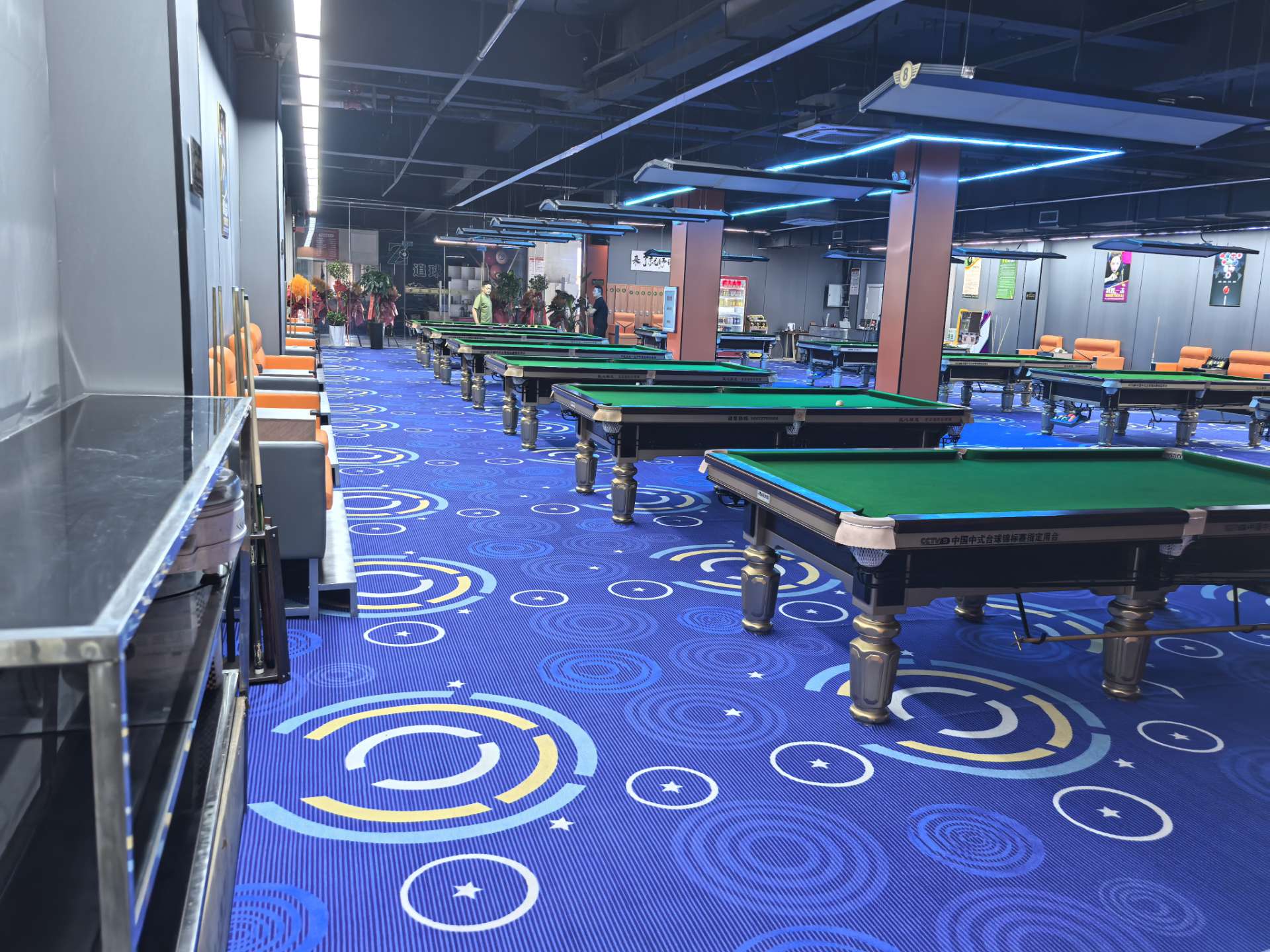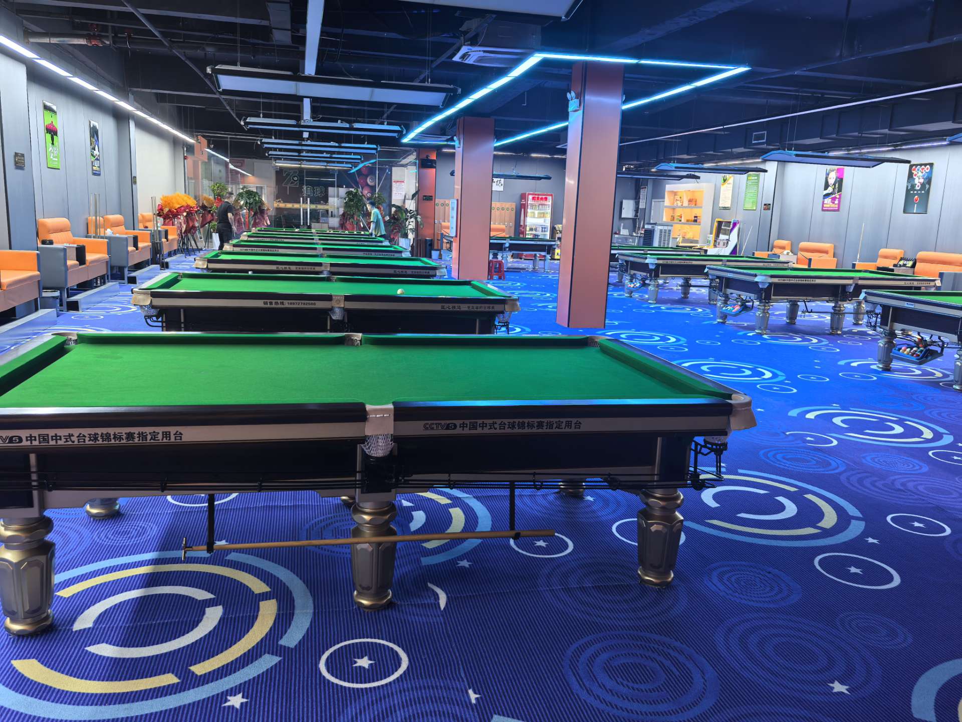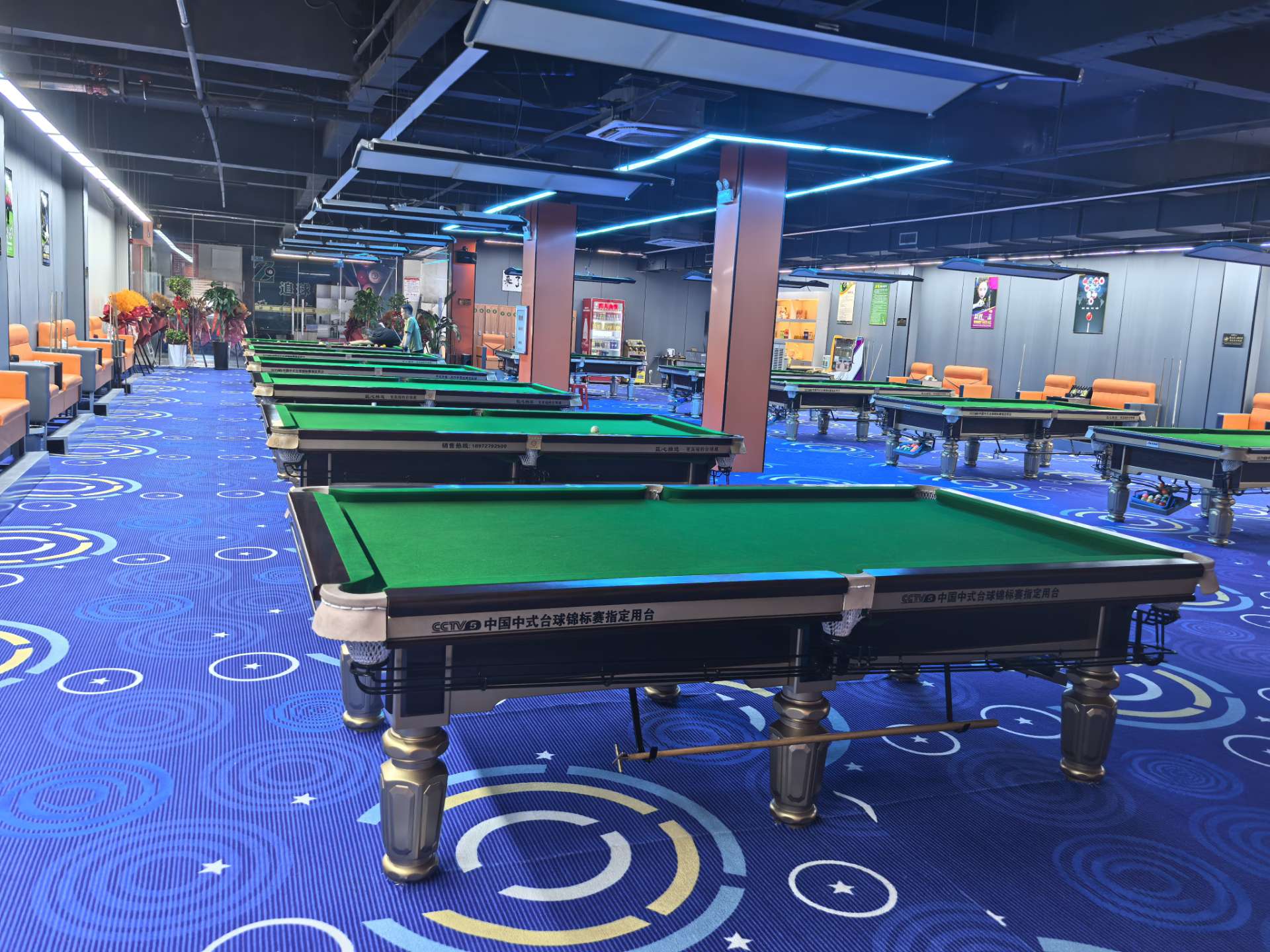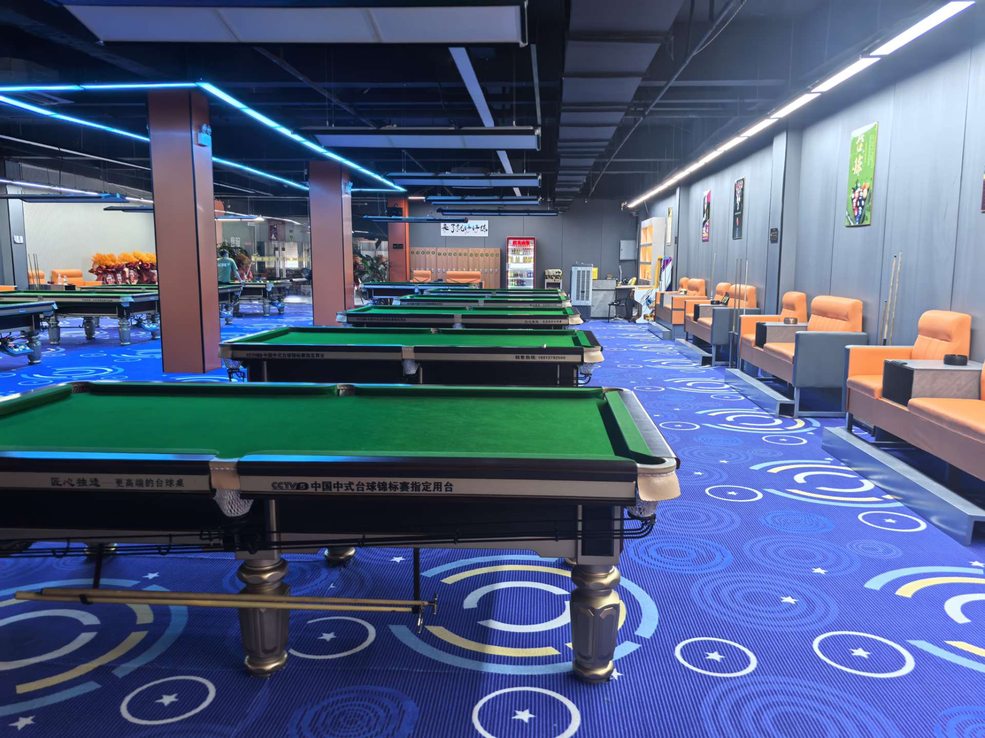 - 店内整体装修简约大气,风格统一,环境干净整洁。专业台球氛围灯