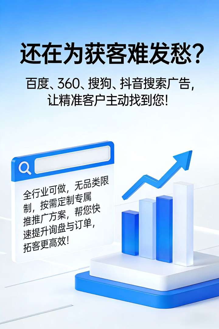 百度、360、搜狗、抖音搜索广告,让精准客户主动找到您!