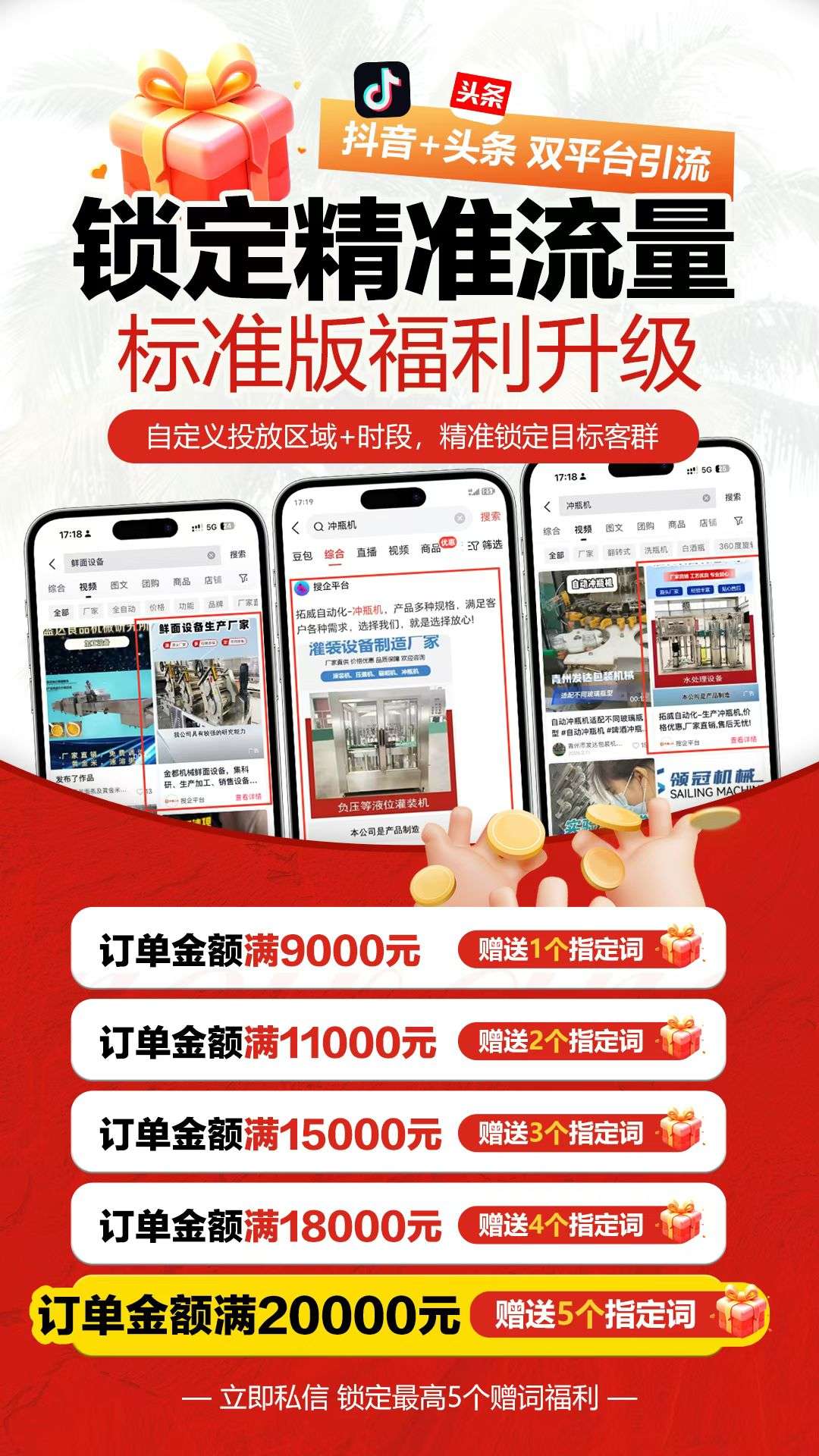 🔥 抖音引流・标准版福利升级 抖音+头条双平台,自定义地域+