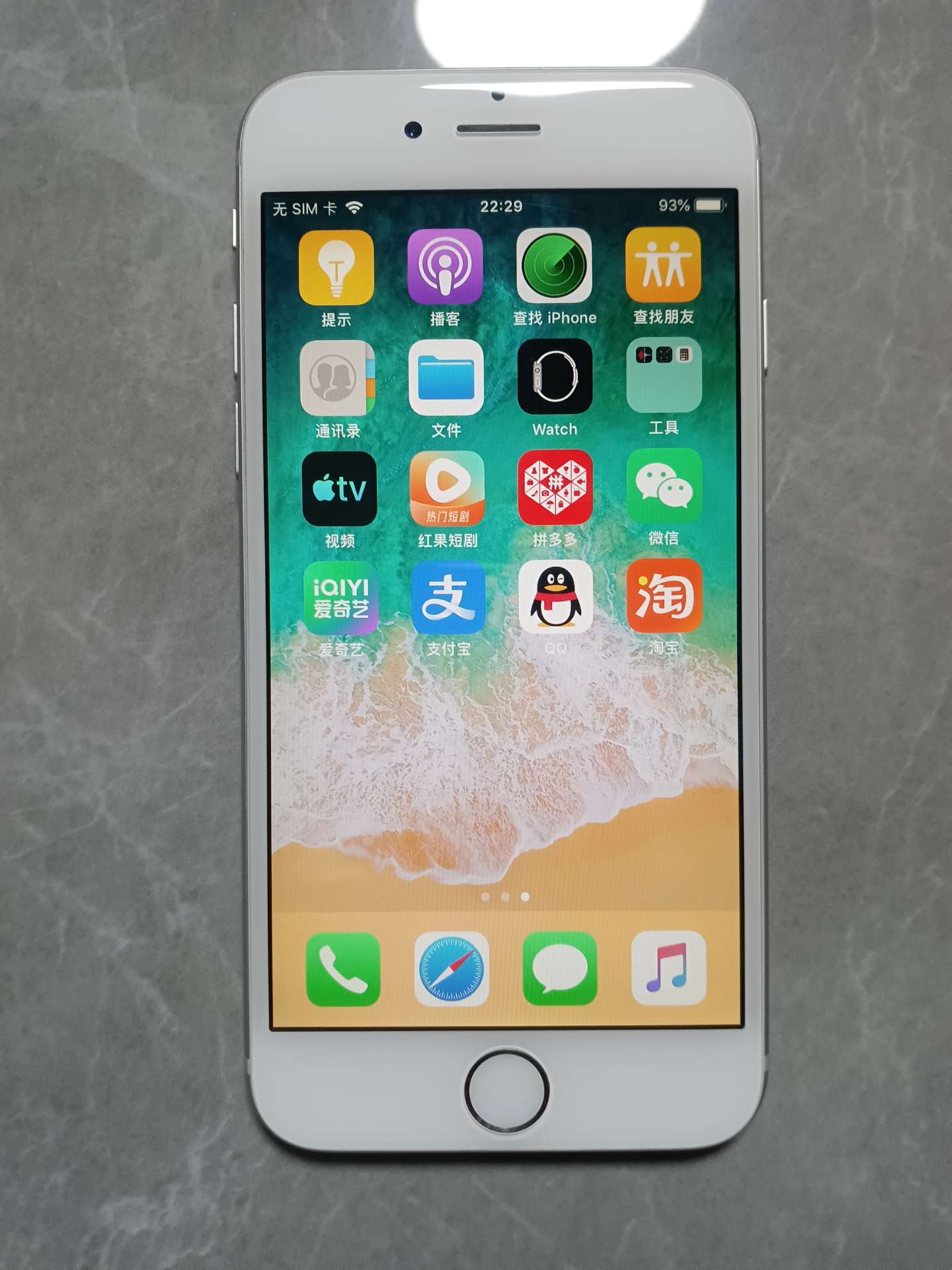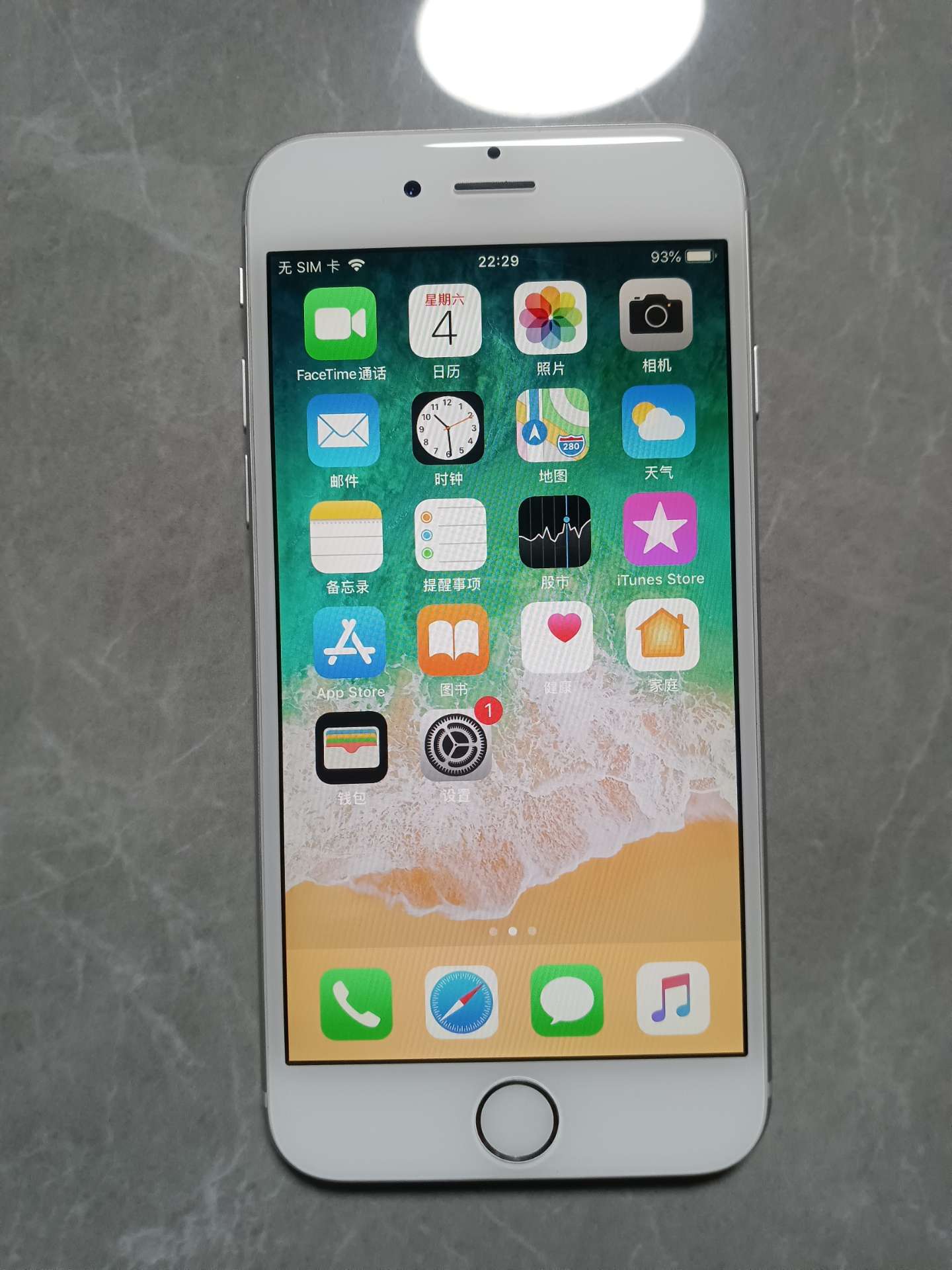 出售1台银色小苹果6手机
