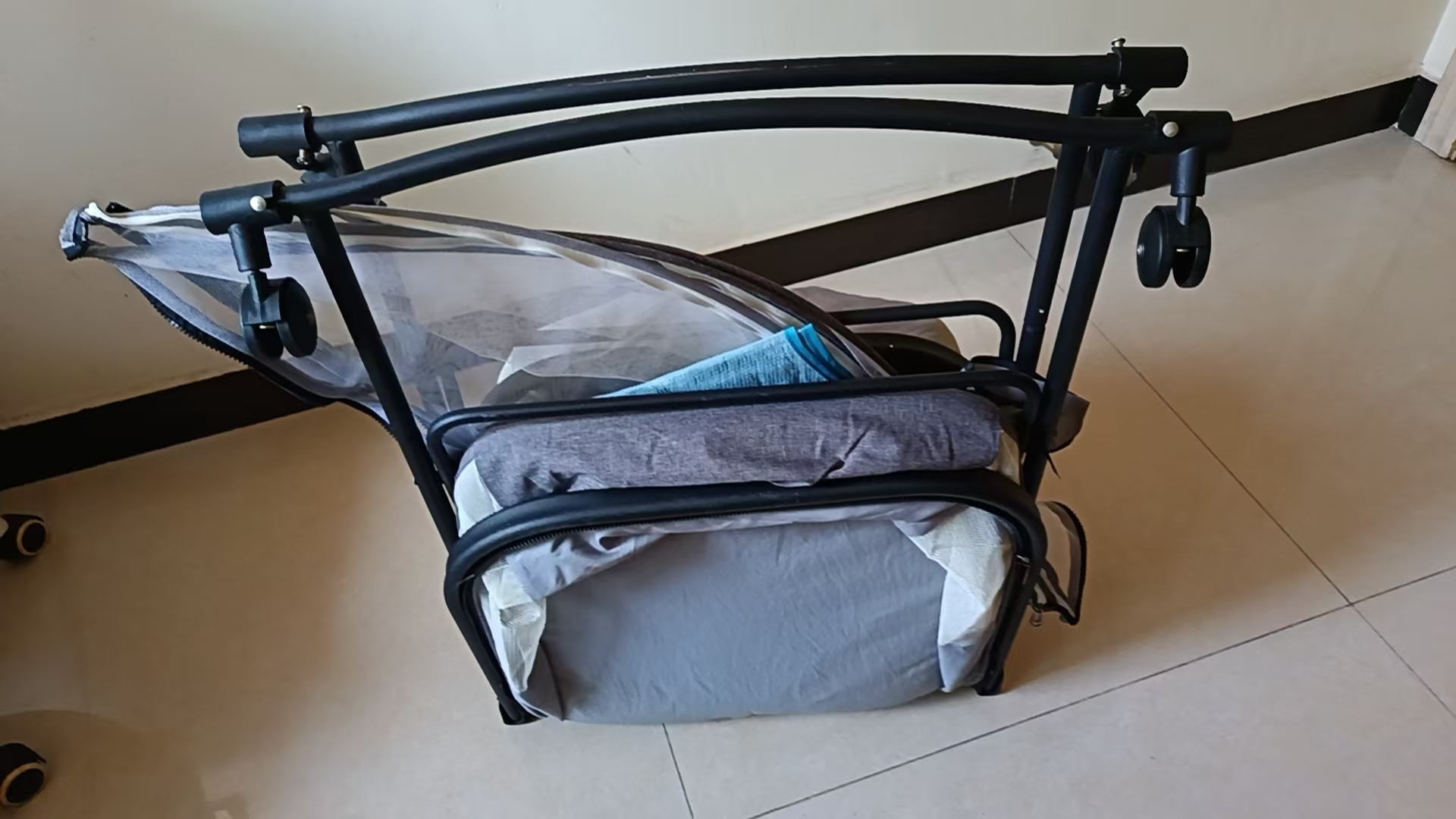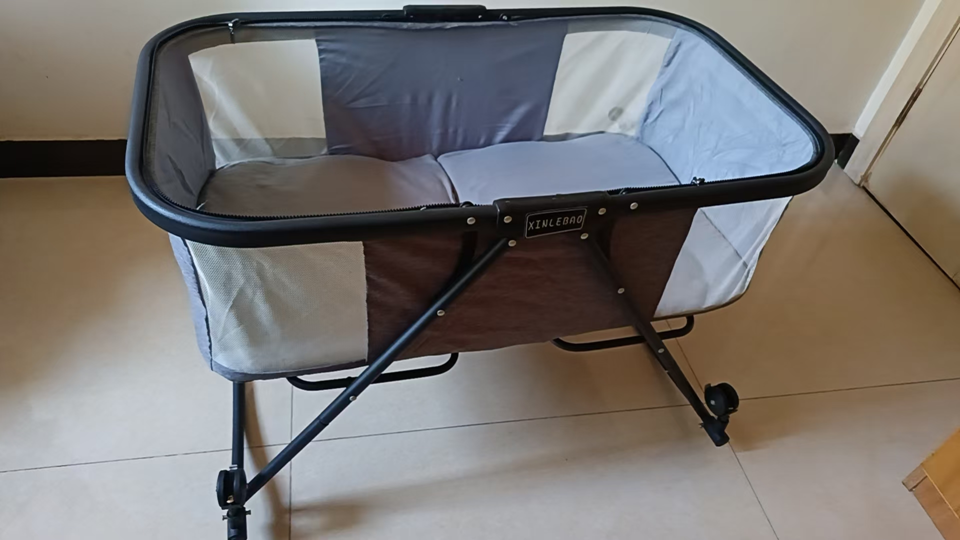 可折叠可推行带蚊帐可摇晃婴儿床