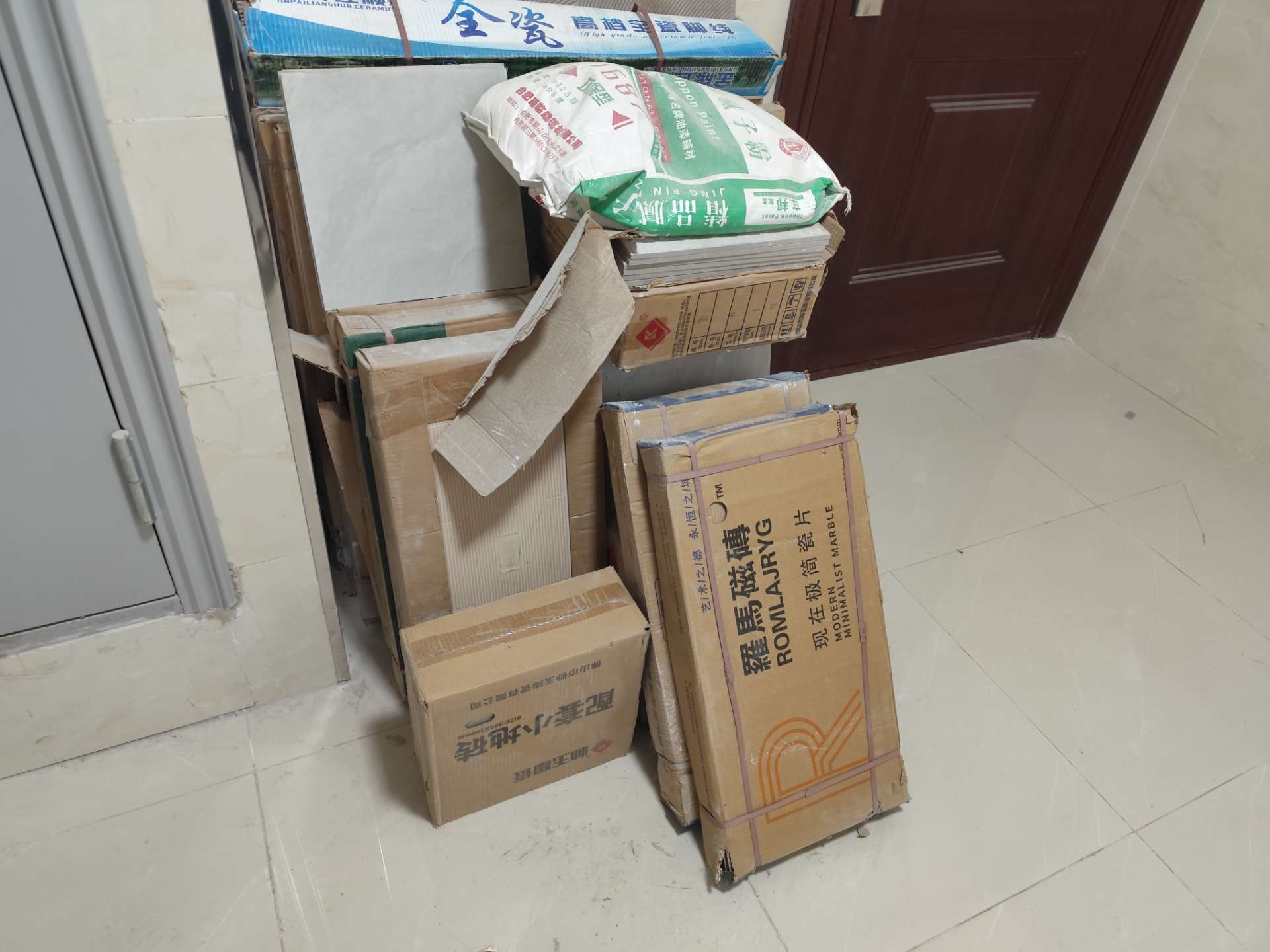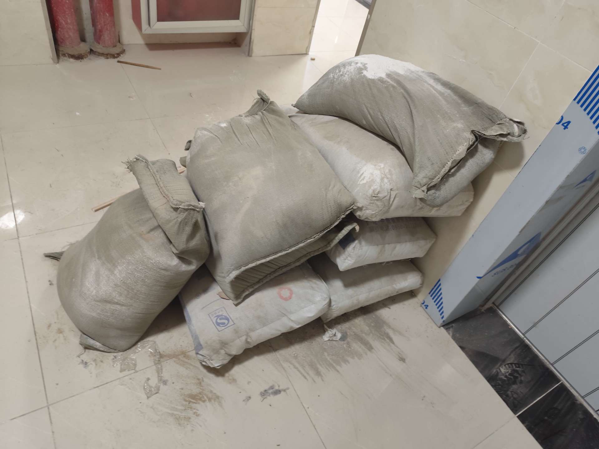 水泥、沙子15一袋,地砖大的时候10快,小的5块